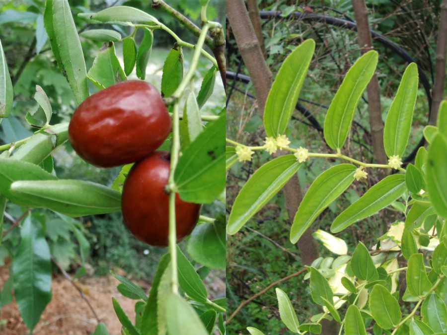 Ziziphus jujuba 5x3m, croissance lente, fruit très nutritif, comparable à la figue, riche en vitamine A,C, fer et calcium, les fruits jeunes ont le goût pomme vert acidulé, bien sucrée à maturité, puis flétri le goût ressemble au dattes; résiste à la sécheresse, supporte le calcaire, facile de culture, sol drainé et sec, rusticité –18°C